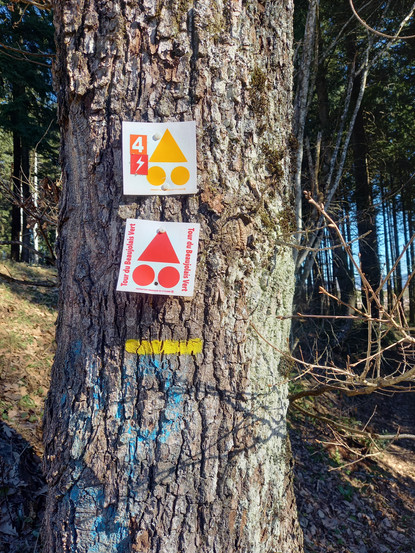 Sur la fin du circuit 4, des vis nylons avaient été absorbés par la croissance des arbres (peu après le col du Pavillon). Je les ai remplacés. Plus loin une coupe d'arbre avait laissé une intersection sans balise. J'ai ajouté une fausse route.
