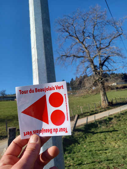 Sur la fin du tour de pays il ne manquait pas grand chose. J'ai simplement remplacé des balises usées par le soleil, j'en ai ajouté une un peu avant une intersection (afin que l'on sache assez tôt où aller.) Un poteau bois télécom (avec notre balise !) a été remplacé par un métallique. J'ai ajouté un autocollant pour la remplacer. Enfin, au col du pavillon, le poteau du PDIPR est à terre (c'est probablement le chasse neige qui l'a renversé.) J'ai ajouté une balise pour compenser. A noter également qu'une balise autocollante avait été arrachée.